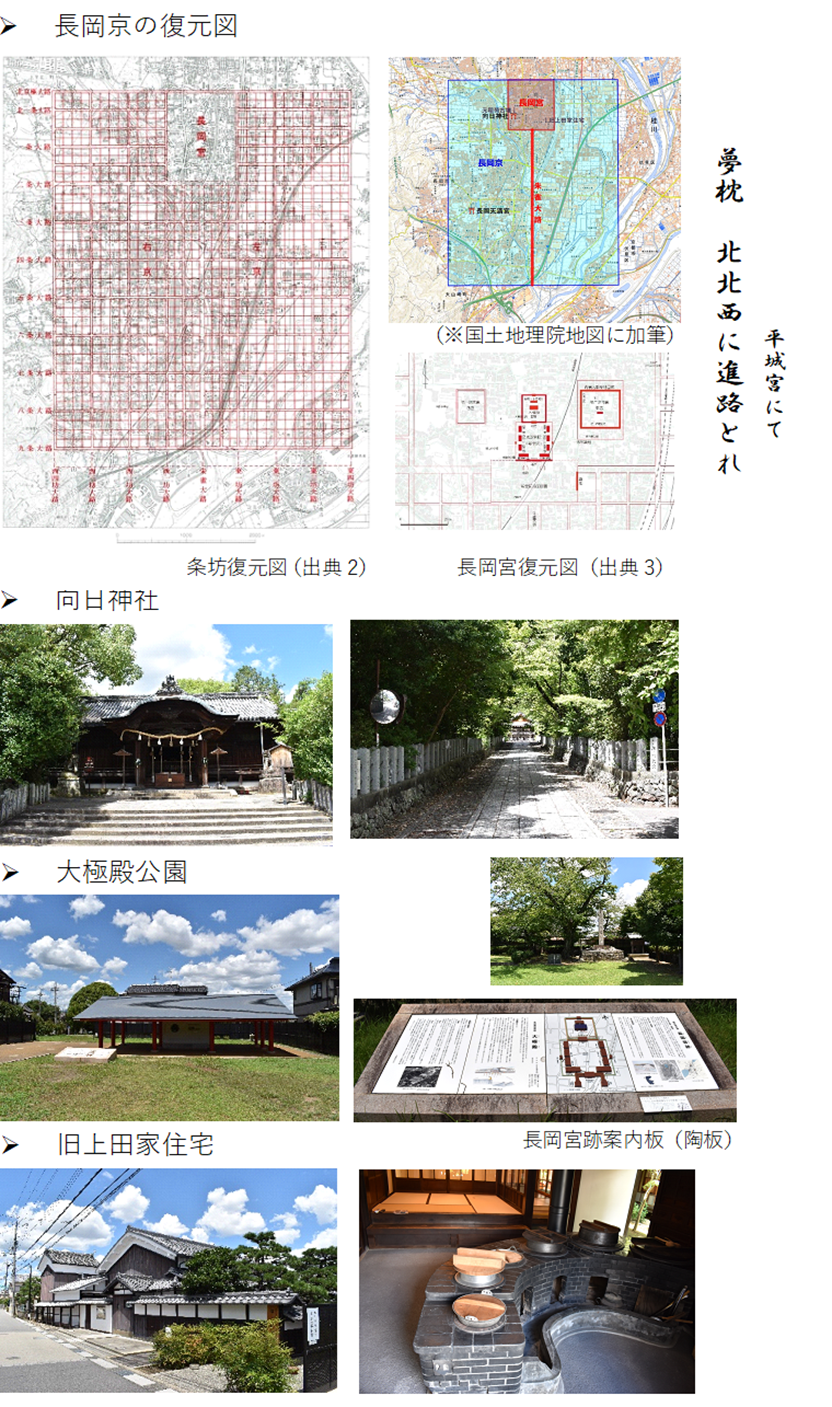 (文献1)「平安京の時代 一 桓武王権の成立 1 長岡京の時代」佐々木恵介著、吉川弘文館 2014年 (出典1)「長岡宮内裏「西宮」西方地区の調査(現地説明会資料)」向日市埋蔵文化財センター 2025年 (出典2)「長岡京跡の条坊制」長岡京市埋蔵文化財センター公式サイト (出典3)「長岡宮」向日市埋蔵文化財センター公式サイト